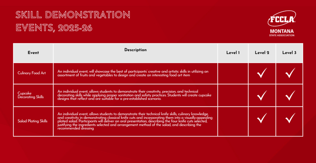 Skill Events – participants demonstrate a skill at the State Leadership Conference.