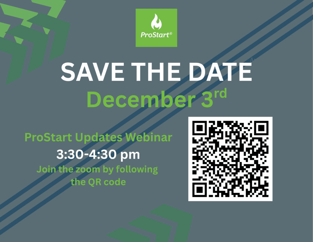 Join us for upcoming ProStart webinars by scanning the QR code. All sessions begin at 3:30.